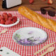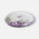 Flores roxas pálidas em um fundo musical desbotado, parte de uma suíte de casamento com muitas peças correspondentes