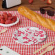 Prato De Papel Flores de papel vermelho e branco