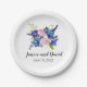 Belo papel branco de design floral floral de cor azul, pratos personalizados de papel branco perfeito para primavera e casamentos de verão.