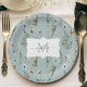 Prato De Papel Flores Monogramas e Folhas de Fern