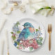 Prato De Papel Flores românticas e pássaro azul