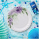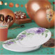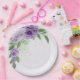 lavandas roxas românticas flores verdes folhas pratos de papel botânico