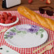 Prato De Papel flores roxas românticas folhas verdes botânicas