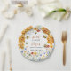 Celebre a noiva com este prato de festa temático "Tão doce quanto o mel" featuring abelhas a zumbir, favo de mel dourado e flores silvestres em aquarela. Uma adição alegre a qualquer chá de noiva inspirado no jardim ou cottagecore. Texto totalmente editável para combinar com os detalhes do seu evento.