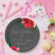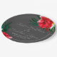 Esta placa de festa personalizada apresenta uma praia tropical ou tema de casamento de ilhas. O fundo é uma cinza simples e elegante com flores tropicais e coloridas do Havaí. Buquês florais com folhas de palma, hibisco e flores de frangipani soam as bordas.