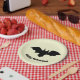 Flying bat on a yellow paper plate. Happy Halloween!