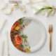 O design de florais de Ação de Graças nesta placa de papel tem cores ricas e vibrantes de rosas e folhagem de outono. Um sotaque perfeito para sua mesa de jantar. Comece suas festas de férias com papelaria bonito, pratos e muito mais!