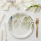 Pratos de papel para casamento elegante com detalhe de folhagem sofisticada verde suave da Ricaso
