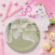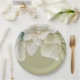 Pratos de papel para casamento elegante com detalhe sofisticado de folhagem verde suave da Ricaso
