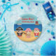 Ahoy companheiros! Este design temático do pirata é grande como fontes do partido para uma festa de aniversário do pirata! Caracteriza miúdos pequenos bonitos do pirata em uma praia, em um menino do capitão do pirata com um chapéu e aferrar-se dos crossbones a um telescópio, em uma menina do pirata com seu cabelo amarrado em uma trança, vestindo um chapéu cor-de-rosa do pirata com forma do coração nele e aferrando-se ao mapa do tesouro e a um menino pequeno do grupo do pirata que se vista e bandana vermelho e branco e se aferrar a um balde e a uma pá. Em algum lugar sobre o mar, há uma baleia cinzenta que sprouting a água e um barco de vela com as listras vermelhas e pretas. Personalize facilmente com sua mensagem.