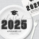 Classe de Placa de Papel para Graduação Branca e Preto Elegante de 2025. Celebre esse marco com uma na moda e uma placa personalizada de papel de graduação, perfeita para servir comidas em uma festa de formatura. Apresentando "Classe de" em cinzas suaves e "2025" (ou qualquer ano) em negrito, juntamente com um ícone de boné de formatura preto. Uma simples estrutura preta borda as bordas de uma aparência polida. Na parte inferior, há um espaço personalizável para o nome da escola do formando, fazer-o um partido único e significativo, essencial. Totalmente personalizável, você pode ajustar as cores e o texto para corresponder às cores da escola ou ao estilo pessoal, fazer-o como uma adição perfeita à celebração!