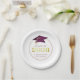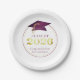 Pratos de papel personalizados elegantes para festa de formatura da TURMA DE 2026, apresentando um falso capuz de formatura em burgundy, marrom e dourado metálico com o ano e o seu texto personalizado (mostrado com PARABÉNS NOME) em marrom. ASSISTÊNCIA: Para obter ajuda com modificação de design ou personalização, alteração de cor, redimensionamento, transferência do design para outro produto ou se você gostaria de itens coordenados, entre em contato com o designer ANTES DE COMPRAR através da guia de MENSAGEM do Zazzle Chat ou envie um e-mail para makeitaboutyoustore@gmail.com.