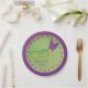 Roxo, verde e dourado ou amarelo! Esta placa de papel com as cores clássicas do Mardi Gras é perfeita para a festa do Mardi Gras que você está planejando! A design tem uma máscara verde com penas roxas, fitas amarelas e outros elementos decorativos. As miçangas são alinhadas para formar uma borda decorativa. Além de Mardi Gras, isso faz suprimentos de excelente para festas de mascarada ou carnaval. Personalize com sua mensagem!