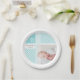 Prato De Papel Foto Azul Anúncio de Nascimento Gingham Pegadas