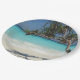 Placas de papel com uma fotografia bela e serena. Águas turquesas tropicais azuis, com uma praia branca arenosa. Uma árvore tropical solo proporciona um bom lugar para relaxar e desfrutar desse lugar idílico cênico.