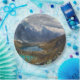 Placas de papel com uma bela fotografia natural. Apresentando montanhas alpinas com neve e lagoas tranquilas enfiadas a dentro do vale dessas montanhas majestosas.
