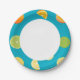 Estas placas de papel apresentam limões, limões e laranjas sobre fundo azul-lacrimogêneo. Perfeito para as pessoas que querem adicionar uma pop na sua vida diária. Excelente para picnics, mesa jantada ou apenas ingerir comida em frente à tv.