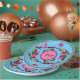 Prato De Papel Fruta rosa de cerejas em turquesa com bota inicial