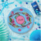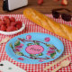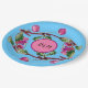 Prato De Papel Fruta rosa de cerejas em turquesa com iniciações