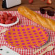 Prato De Papel Fuchsia bolinhas em laranja