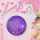 Fundo de faturas violetas com estrelas douradas e azuis. Fundo com estrelas.