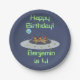 Prato De Papel Galinhas engraçadas em cartoon espaçonave