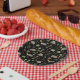 Prato De Papel gambás em campo de Berry em preto