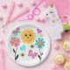 This artwork is a cheerful and whimsical illustration featuring a collection of brightly colored elements such as the sun, flowers, butterflies, bees and hearts. It is a playful, child friendly design. It would be perfect for children's decor, stationery, or spring/summer themed celebrations and gatherings