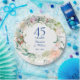 Com uma delicada grinalda floral em aquarela, este prato de papel para aniversário de casamento de 45 ou 65 anos, pode ser personalizado com os detalhes do seu aniversário em tipografia azul safira. Concebido por Thisisnotme©