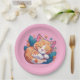 Quem ama gatos ficará encantado com esse gatinho de desenho animado. O gato que dorme numa cama de folhagem e flores é colorido em pastéis brilhantes. A cor de fundo rosa pode ser alterada para qualquer cor desejada na ferramenta design do Zazzle. Adicione qualquer texto dentro da ferramenta também. Muito bonito para qualquer evento, mas especialmente para a festa de uma menina.