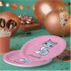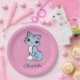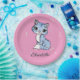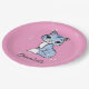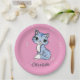 Prato De Papel Gato azul bonito com nome personalizado rosa