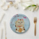 Prato De Papel Gato de Maneki-neko aquarela com sakura em flor