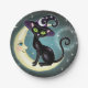 Prato De Papel Gato Feiticeiro na Lua Crescente Halloween Wiccano