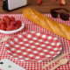 Gingham vermelho e branco