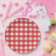Prato De Papel Gingham vermelho e branco
