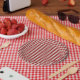Prato De Papel Gingham Vermelho e Branco