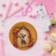Girafa bebê em um desenho animado em frente à rosa. Descubra uma cena de arte digital encantadora: uma girafa bebê em um estilo de desenho animado bonito, decorada com engrenagens e relógios, está em frente a um arco de pedra decorado com rosas e engrenagens. Atrás dela, a luz quente irradia uma atmosfera fantástica e caprichosa.