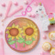 Prato De Papel Girassóis Amarelos Textos Verdes Cor-de-Rosa