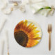 Um girassol do outono com as raias do vermelho nas pétalas amarelas. Os girassóis simbolizam a longevidade, a lealdade e a adoração. Estas placas de papel são inteiramente customizáveis.