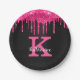Prato De Papel Girly Hot Pink Black Glitter Drives Nome do Monogr