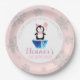 Prato De Papel Girly Winter Cute Penguin Rosa Birthday