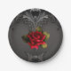 Prato De Papel Glamor Gótico Rosa vermelha Grelha Ornamental Negr