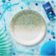 Prato De Papel Glitter Dourado branco e azul lacrimogênio moderno