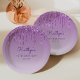 Estas elegantes placas de papel de 16 festa de aniversário, chic, apresentam uma borda brilhante, púrpura, com brilho e fundo ombre roxo. Personalize-os com o nome da convidada de honra em um roteiro de escrita manual roxo, com seu aniversário e data abaixo na fonte sans serif.