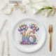 Prato De Papel Glittery Number 16 com balões e Confetti