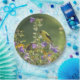 Prato De Papel Goldfinch em uma Flor Harebell