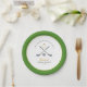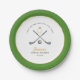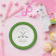 'Last swing before the ring' Simple and elegant green and white Golfing theme bridal shower party paper plates featuring hand painted watercolor golf clubs and ball.