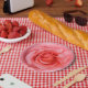 Prato De Papel Gotas Românticas de Água Rosa Rosa Rosa Vermelha