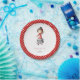 Chapas de papel bonitas com uma mulher vestida de dançarina de sevillana com um belo vestido vermelho com bolinhas brancas. Ela está dançando sevillanas o flamenco em seu vestido de polkadot vermelho e branco. Ilustrada e projetada por Patricia Alvarez.