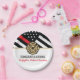 Este design apresenta uma bandeira de bombeiros com listras pretas e brancas, e uma fina faixa vermelha também. "Parabéns" e o crachá de bombeiro ficam acima do nome do bombeiro graduador. Esta design também funciona como excelente para se aposentarem bombeiros, tenentes ou chefes. Celebre em estilo!